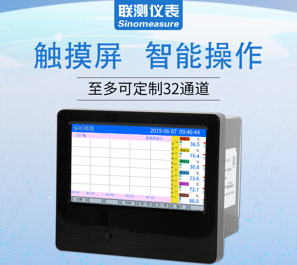 8路萬(wàn)能信號(hào)輸入(可組態(tài)選擇輸入:標(biāo)準(zhǔn)電壓、標(biāo)準(zhǔn)電流、熱電偶、熱電阻、毫伏等)??蓭?路報(bào)警輸出,1個(gè)饋電輸出,RS485通訊接口,以太網(wǎng)接口,微型打印機(jī)接口和USB接口,SD卡插座;具有強(qiáng)大的顯示功能,實(shí)時(shí)曲線(xiàn)顯示,歷史曲線(xiàn)追憶,棒圖顯示,報(bào)警狀態(tài)顯示。
